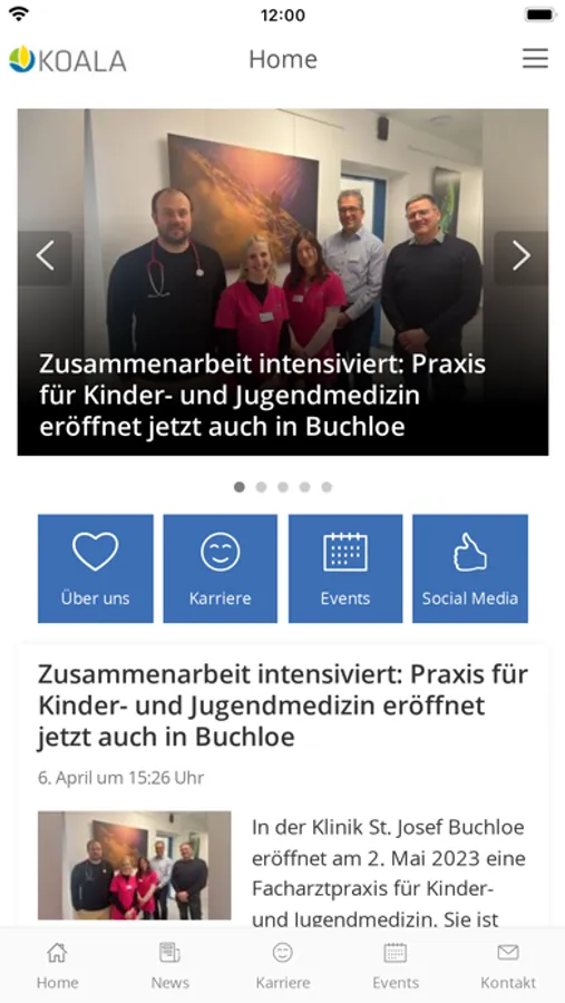 KOALA ist die Kommunikation-App der Kliniken Ostallgäu-Kaufbeuren, die mit ihren rund 2.200 Mitarbeitenden für hochwertige Medizin an den drei Standorten Kaufbeuren, Füssen und Buchloe stehen. Die App bietet aktuelle Informationen über die Kliniken Ostallgäu-Kaufbeuren, ihre zugehörigen Fachpraxen und Pflegeschulen. Ergänzt wird das Angebot durch Pressemitteilungen, den Zugriff auf den Veranstaltungskalender und das Karriereportal.