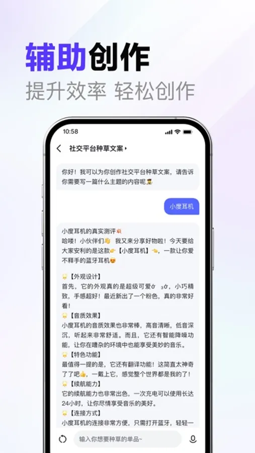 -灵感中心,触手可及:不仅能用,更实用。灵感中心的上百款实用工具能够覆盖日常生活的创作、职场、学习、情感、绘画等多个应用场景。即来即用,输入简短字句,即可生成惊喜大作。动漫女神头像、朋友圈神器、短视频脚本等工具已受到上万用户的认可,期待成为“最懂你的智能助手”。