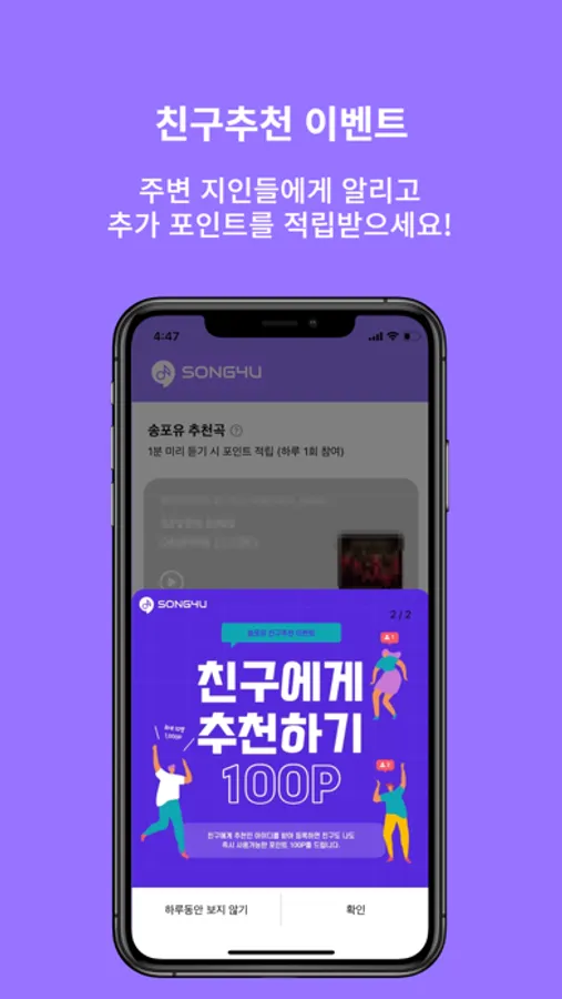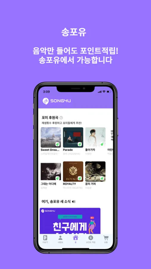 2. 친구추천 : 송포유를 지인에게 알리고 추천인 적립을 받을수 있습니다.