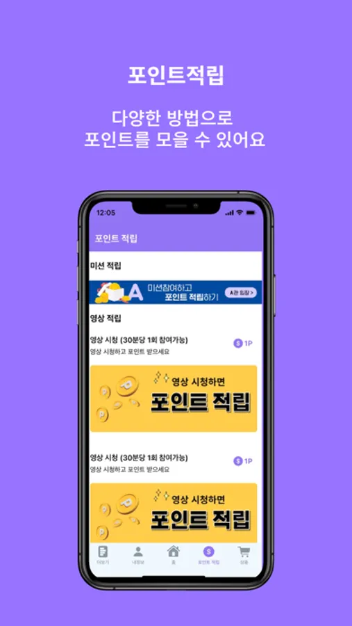 1. 포인트적립메뉴 : 다양한 참여 미션을 통해 추가로 포인트를 적립받을 수 있습니다.