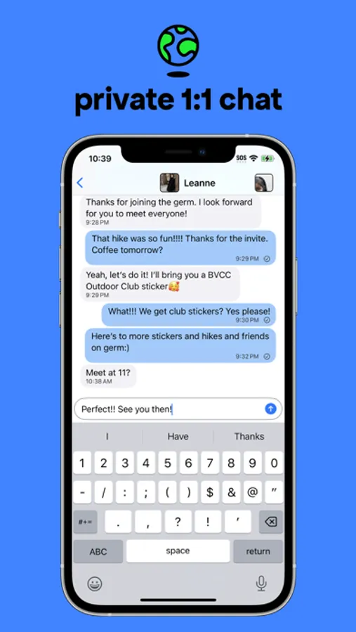 Germ is your personal social network — a private messenger that puts you back in control over what you share. Connect instantly with as little as a name and a swipe by showing a QR code or sending a link. Once you have the Germ app you can start a chat with anyone who accepts, even if they don’t have the app yet! Everything you share on Germ is end-to-end encrypted, meaning only the person you send it to can see it—not even us, the developers. Germ is carefully designed to put you in charge of your data, and will never share information you don’t want others to know.