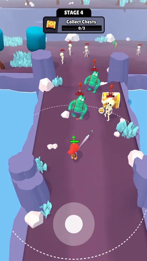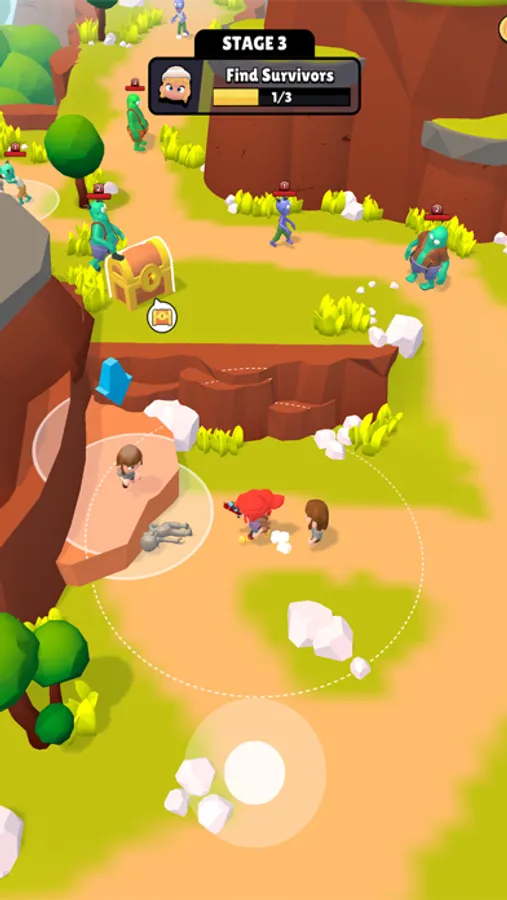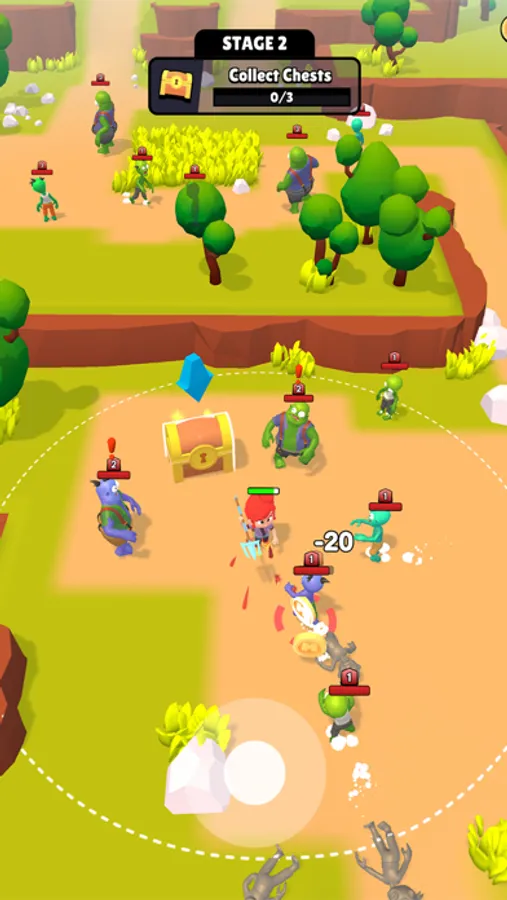 Defend yourself against a horde of zombies in this action-packed adventure! Control your character using joystick through treacherous terrain and collect resources from chests to craft new weapons. Merge resources to create even deadlier gears and take on more powerful creatures.