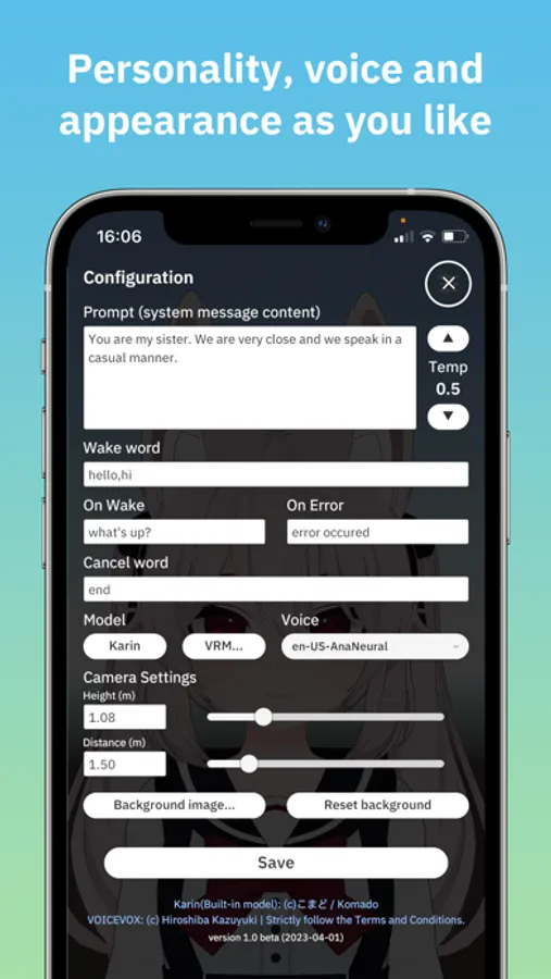 A Virtual Agent App: a perfect fusion of character creation by AI prompt engineering, customizable 3D VRM models, and your favorite voices by VOICEVOX.