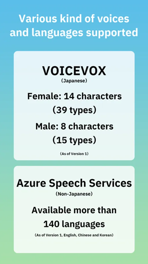 ※Please refer to the usage terms and conditions for each character recorded in VOICEVOX when using audio-accompanied captured videos of this app.