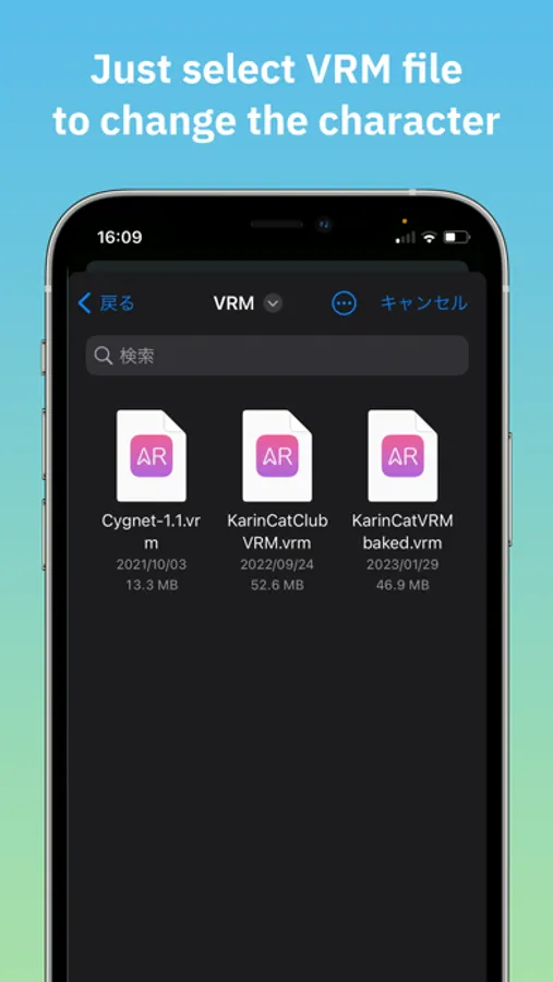 - To change the character's 3D model, copy the VRM file to your iPhone, then select that VRM file by tapping the "VRM..." button. To apply the changes, restart the app.