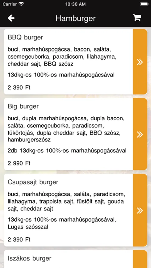 A szegedi Tex Mex Home vendéglő bőséges étlapján rengeteg hamburger közül lehet válogatni. Hamburger sertéshúsból, hamburger marhahúsból, hamburger csirkehúsból, vega hamburger, halas hamburger, quesadilla, burritos, gyros, tortilla , desszert és üdítő található meg a kínálatban. Találd meg az ízlésednek megfelelő street food ételeket és rendeld meg online!
