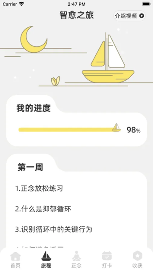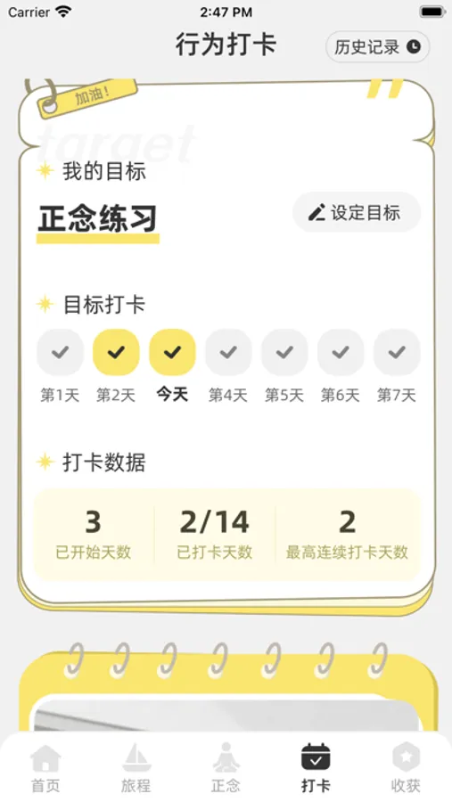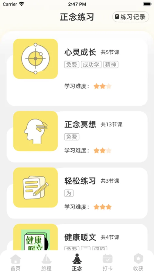 4. 正念练习模块则帮助用户学会深层次的内观,帮助你平静身心。