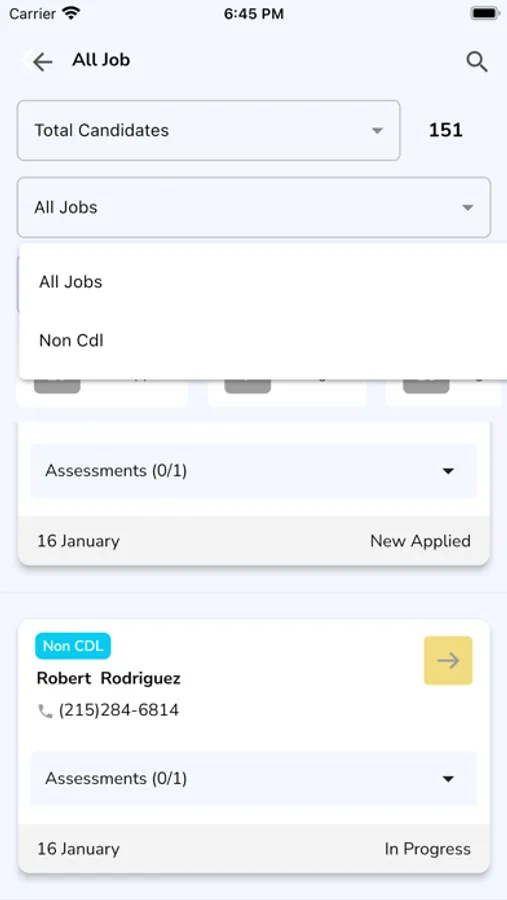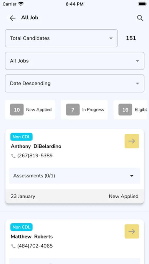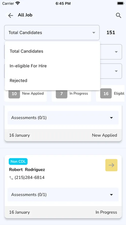 eligible candidates with ease. Our app categorizes candidates by status, providing