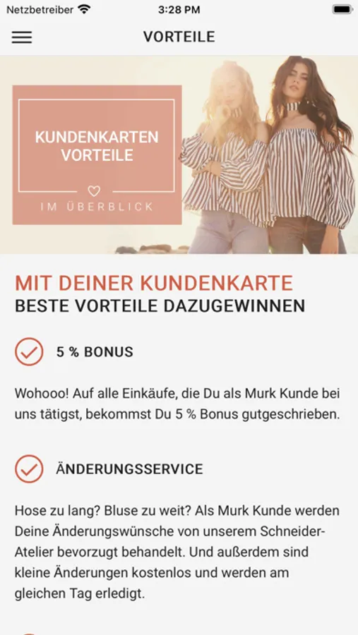 Ein Muss für alle Fashion-Fans! Mit der Murk App hast Du alle Vorteile als Murk Kunde und Deine digitale Kundenkarte immer auf Deinem Smartphone dabei.