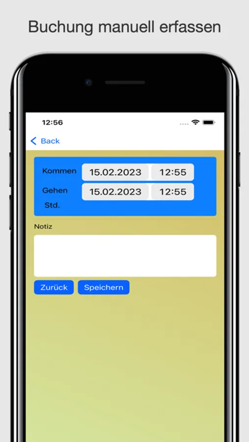 Hier kann eine komplette Buchung mit Notiz manuell erfasst werden.