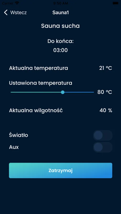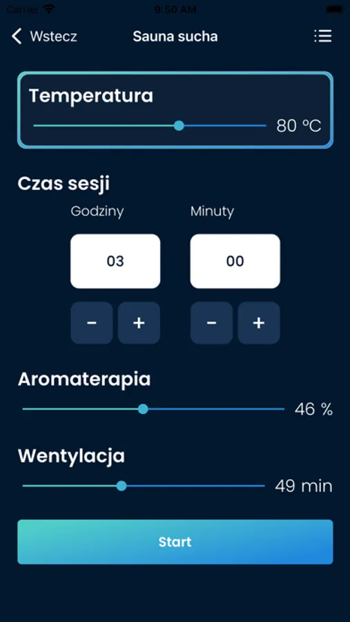 Der Benutzer kann den Betrieb der Sauna mit einem Telefon oder Tablet steuern: