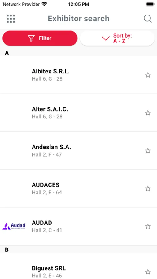 Exhibitors: search for companies and products, filter and sort functions available, also find contact persons ad exhibitor events. Add Photos and Notes to an exhibitor and share them.