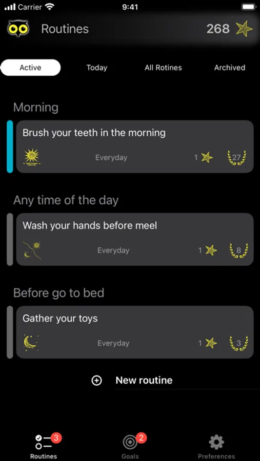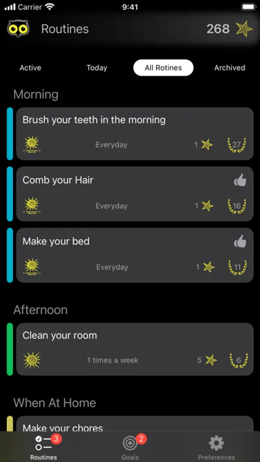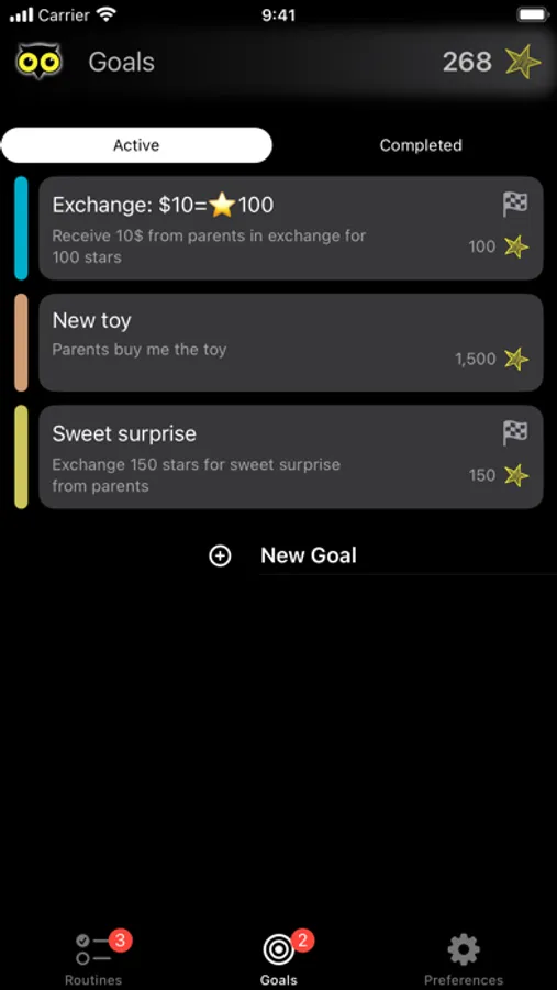 The app includes a system of rewards and achievements. Together with parents, children create goals and track their progress over time. Kids earn points for completing the tasks, which they can use to close out their Goals. Goals are gifts or activities received from parents in exchange for points earned. This helps motivate kids to complete tasks and develops their resource management skills.