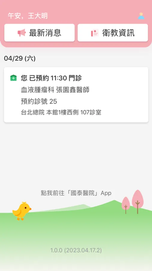 癌症病人在治療期間往往需要週期性的住院,只要病人於住院中心預約登入後,App 可以提供下次預約住院的日期,減少病人反覆詢問是否可入院日期,降低其焦慮。