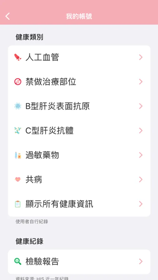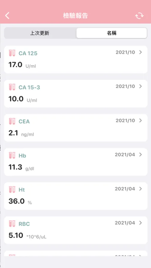 我們希望癌症病人能夠了解自身的身體狀況,我們歸納了36項與癌症病人相關的檢驗值,紀錄在 App 中,可以隨時查詢並與個管師討論。避免醫師或個管師再從HIS端查詢檢驗檢查資料。