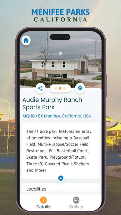 Menifee Parks is your perfect app for finding and exploring city owned parks in the City of Menifee. With this app, you can easily find the nearest parks to your location as well as search for parks by name. The app provides comprehensive information about each park, including its history, amenities such as facilities, park type(Dog Park etc), and location. You can switch from list view to map view with one click, and even get directions with a single tap. We have also ensured that you can also share the park info on social media. With Menifee Parks, you can plan your perfect outdoor adventure in Menifee!