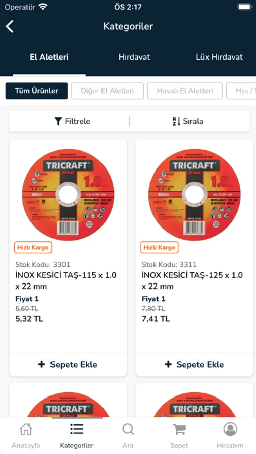 * Ürün kategorilerinde filtreleme yapabilirsiniz