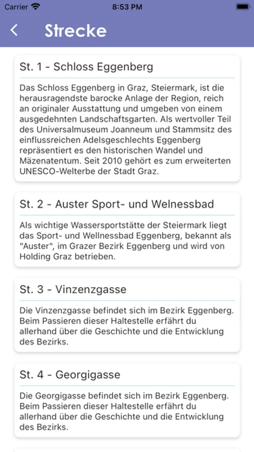In der App kannst du aber nicht nur verschiedene touristische Touren erleben, sondern dir auch diverse thematische Varianten der einzelnen Touren anhören. So wird jede Fahrt mit den öffentlichen Verkehrsmitteln für dich als Tourist:in oder Bewohner:in der Stadt zu einem gänzlich neuen Erlebnis. Da unser Streckennetz und die Touren laufend erweitert werden, hast du immer wieder neu die Möglichkeit neue Aspekte der Stadt zu entdecken.