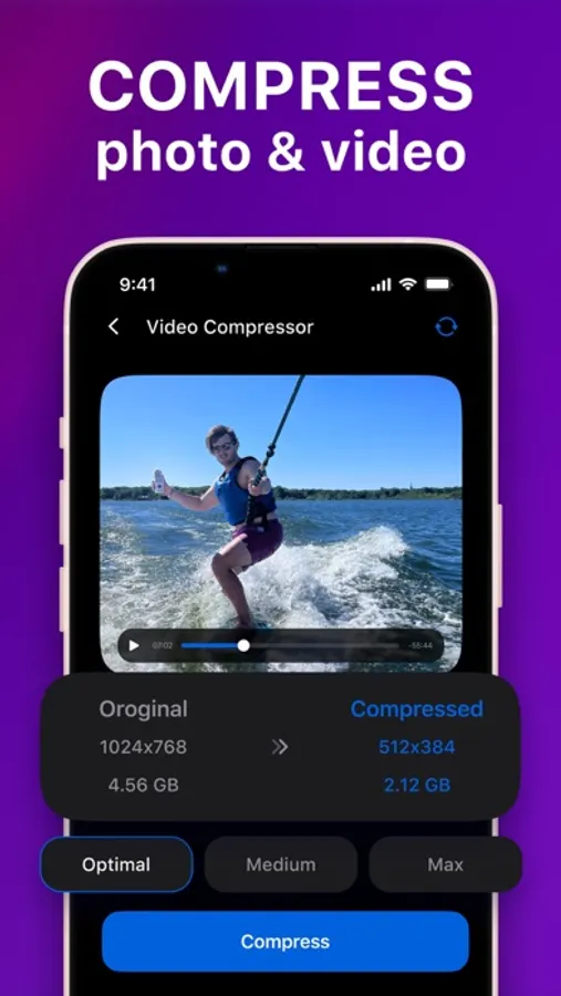 5. Photo and video compression. Compress your photo or video files to optimal size quickly and easily.