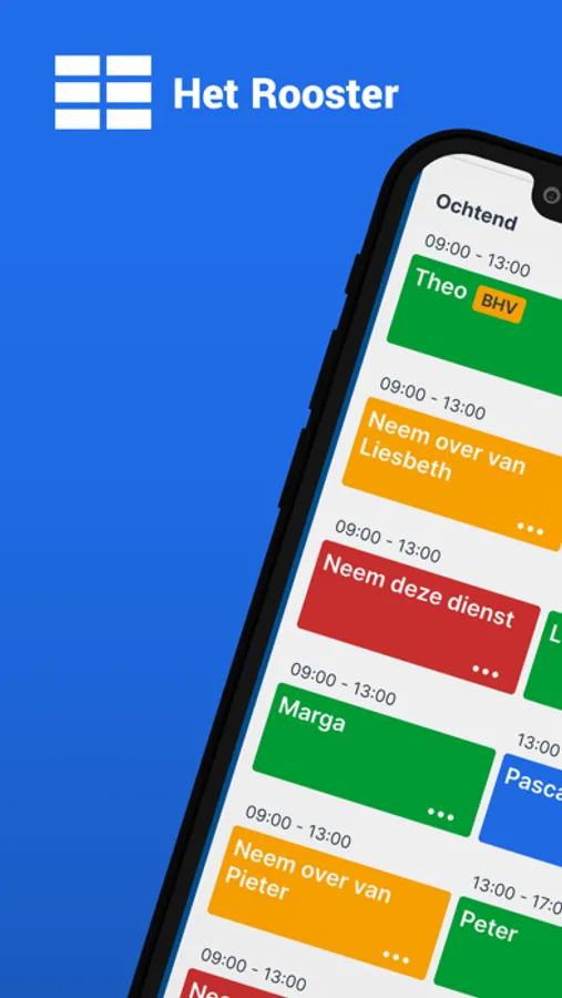 Het Rooster voor personeelsplanning en vrijwilligersplanning.
