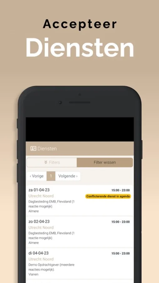 De App is gekoppeld aan het systeem waardoor informatie altijd up-to-date is, via een overzichtelijk dashboard. Bovendien komen belangrijke meldingen, als nieuw beschikbare opdrachten, via een push melding binnen op het apparaat. Zo zie je niets over het hoofd. Ook wijzigingen worden direct zichtbaar, ook in de agenda. Je bent dus altijd op de juiste plaats aanwezig.