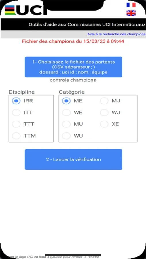 Cette application permet à tous les commissaires Internationaux de cyclisme de simplifier leurs tâches