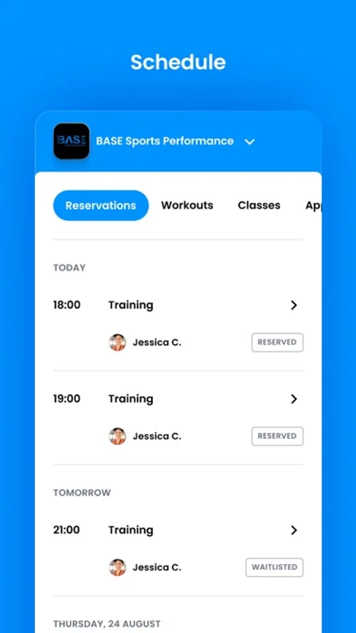 For members of BASE Sports Performance to reserve their place in a class, sign up for gym events, and general account management like updating headshots and credit card on file.