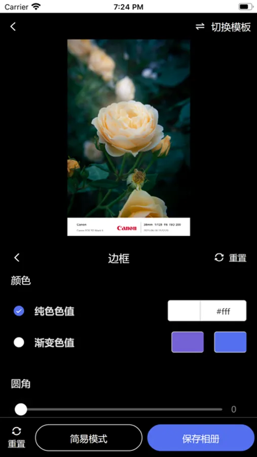 在您的摄影作品四周增加背景,可以自由选择多种样式,并且支持识别logo和参数