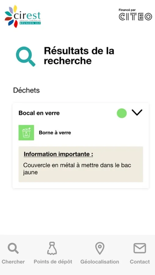 Grace à la géolocalisation des bornes à verre et des déchèteries, l’application Guide du tri vous permet de trouver instantanément le point de collecte le plus proche. Les 300 bornes à verre du territoire sont référencées ainsi que nos 6 déchèteries fixes.