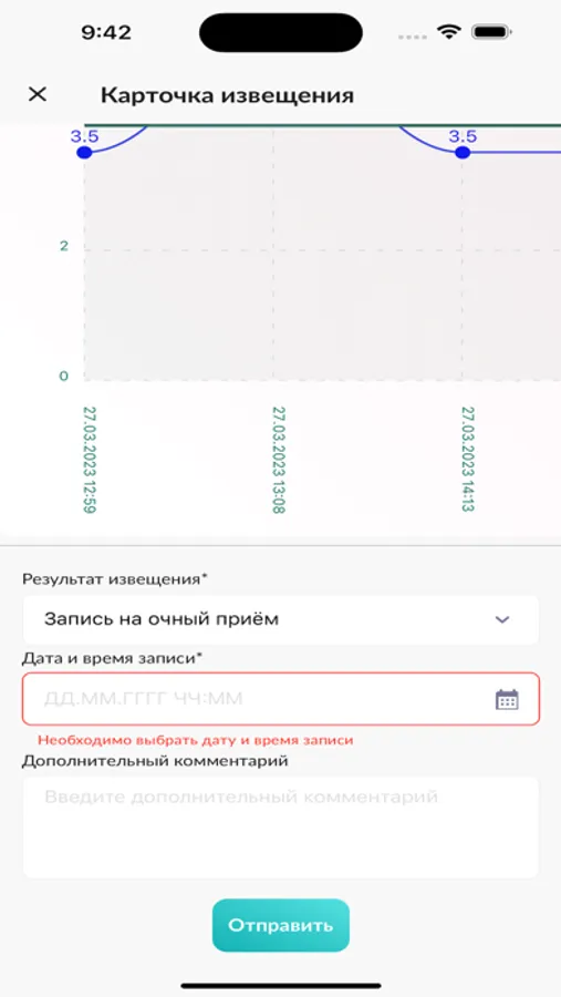 Приложение содержит уведомления от пациентов для лечащих врачей. Врач может ознакомиться с уведомлением и при необходимости пригласить пациента на очный прием или телемедицинскую консультацию. Приложение не предназначено для постановки диагноза, для автоматизированной оценки симптомов, не являются основанием для назначения диагностики, лечения, любых медицинских манипуляций, не осуществляет расчет дозировки лекарственных или других препаратов. Вся представленная информация носит справочный характер и основана на утвержденных и действующих на территории Российской Федерации нормативных документах в сфере здравоохранения.