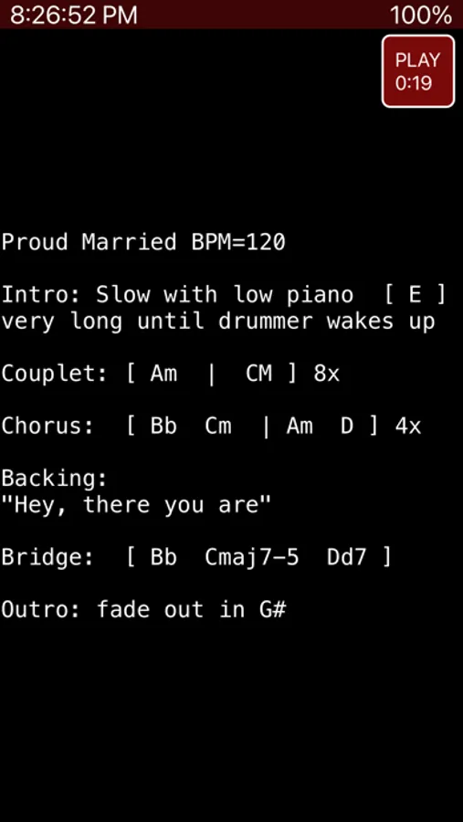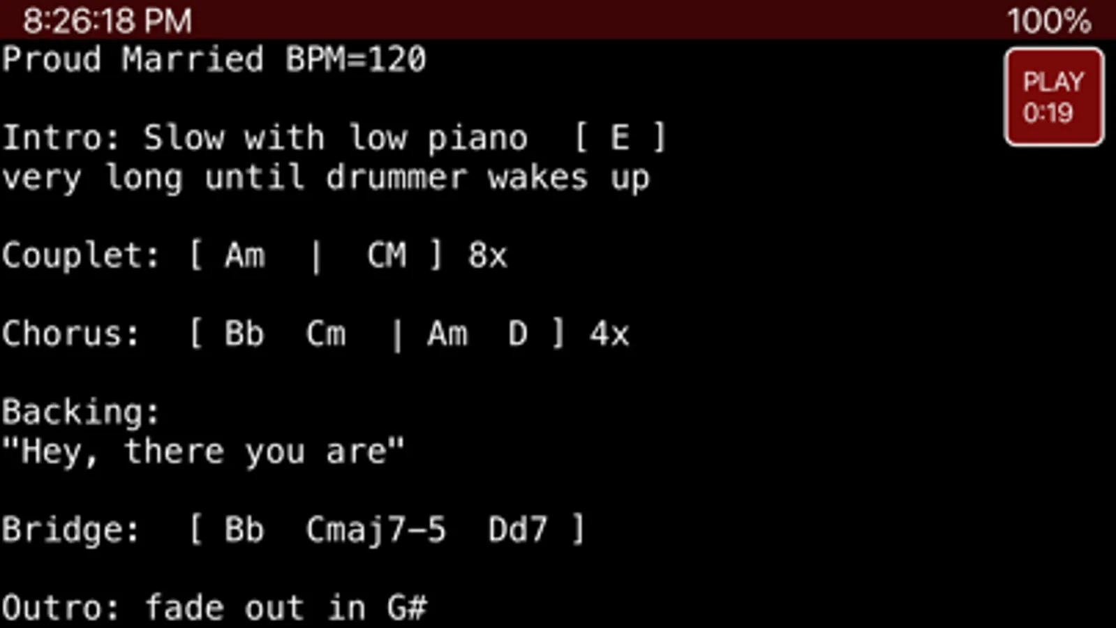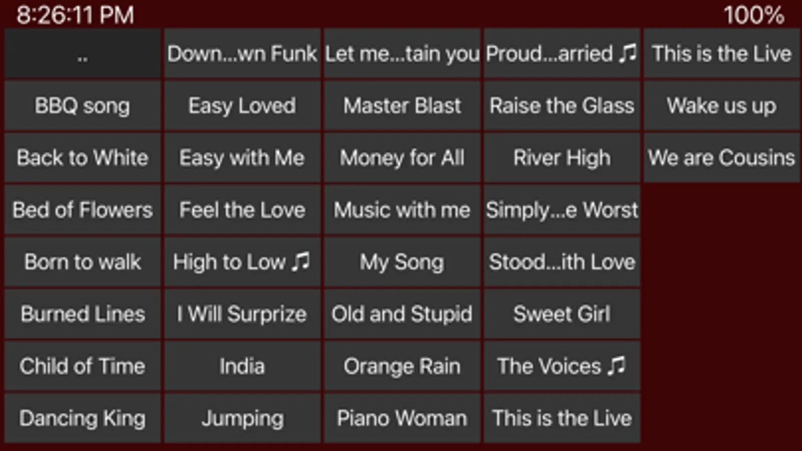 The app automatically downloads iCloud folders of offline usage when the folder is selected. Files are sorted with folders on top, and folders have a slightly darker color and brackets [ ] around their names. The battery and clock are displayed bigger to be visible during performances from a larger distance. If the battery turns red, the power is disconnected. Images are displayed as big as possible with the correct aspect ratio. Text files as big as possible without the need to wrap the text.