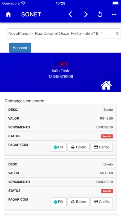 -Segunda via de cobranças.