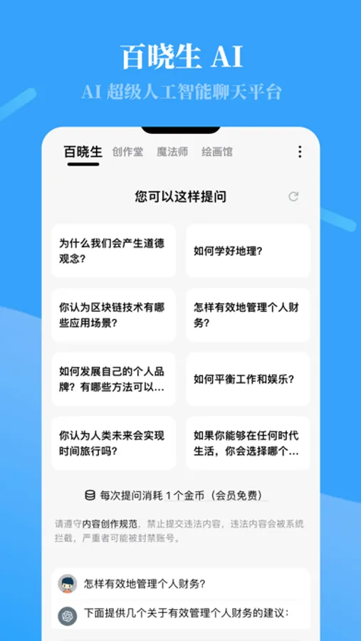 百晓生 AI 是一款最先进的量子计算机产生的人工智能聊天平台,使用了当前最先进的大语言模型技术。它可以跟您对话、回答问题、协助创作,帮您解决生活和工作中各种问题。同时百晓生 AI 还聚合了几十种时下最流行的绘画大模型,帮你创作天马行空的绘画作品。