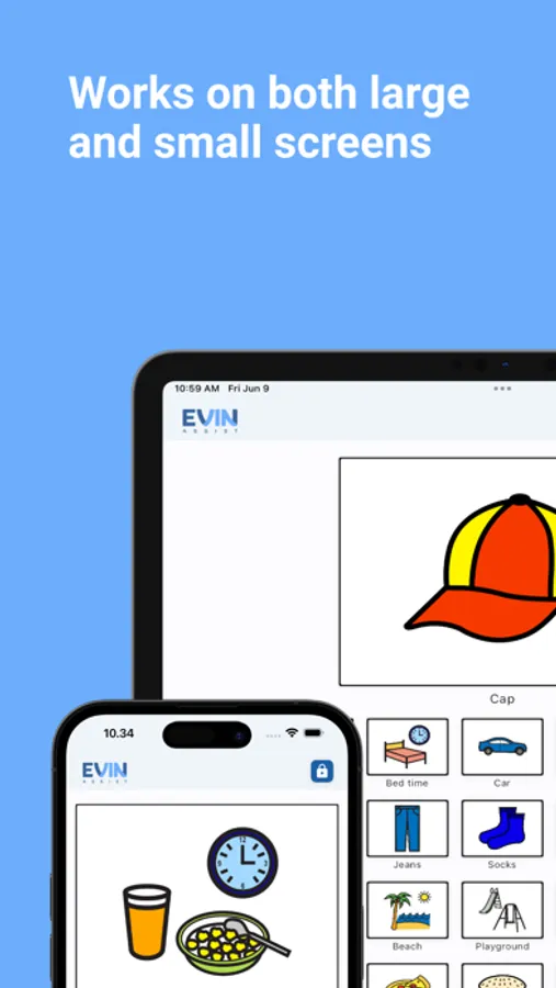 Evin Assist is an easy-to-use picture communication app designed for individuals who have speech and communication challenges. It’s optimized for both large and small screens and is available on all mobile devices.