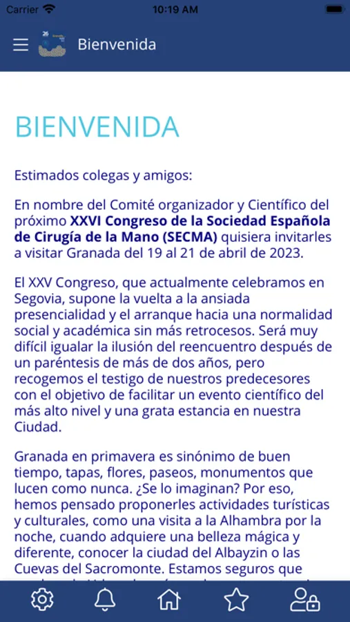 En la aplicación oficial del XXVI Congreso de la Sociedad Española de Cirugía de la Mano (SECMA) podrás encontrar toda la información sobre el evento: Sede, agenda, ponentes, encuestas, contacto con la organización, etc.
