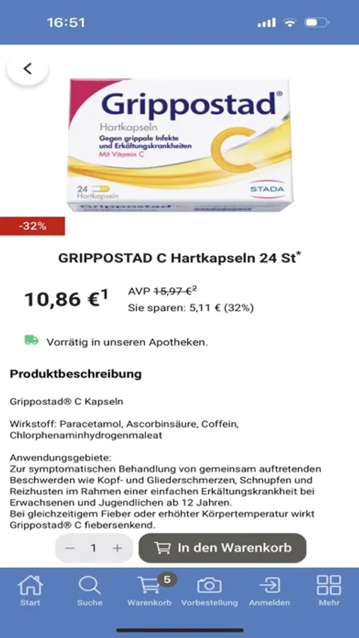 Bestellt bis 12 Uhr > abholbereit ab 16 Uhr (samstags ab 15:30 Uhr) bzw. Lieferung noch heute (außer samstags).