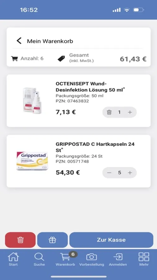 • Mit unserer App bestellen Sie ganz bequem und rund um die Uhr Ihre Arzneimittel, Kosmetikprodukte, Nahrungsergänzungsmittel u.v.m. Auch die Bestellung von Rezepten ist möglich – senden Sie uns einfach ein Foto.*