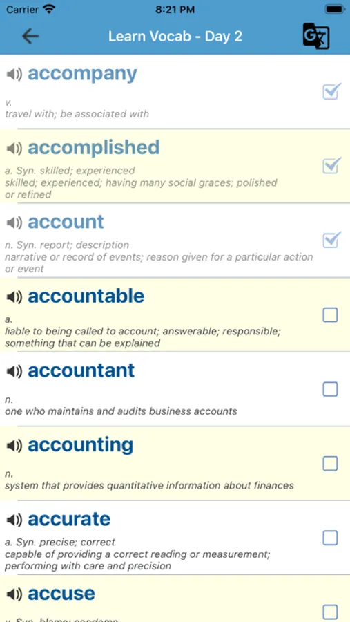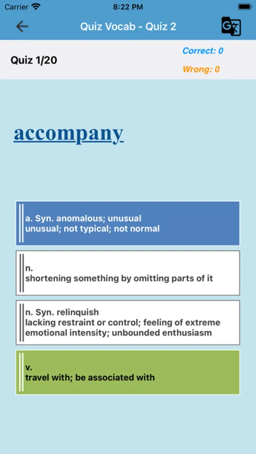 The application also includes a translation tool to help you learn and understand words more clearly in your native language. Download the app and start practicing now.