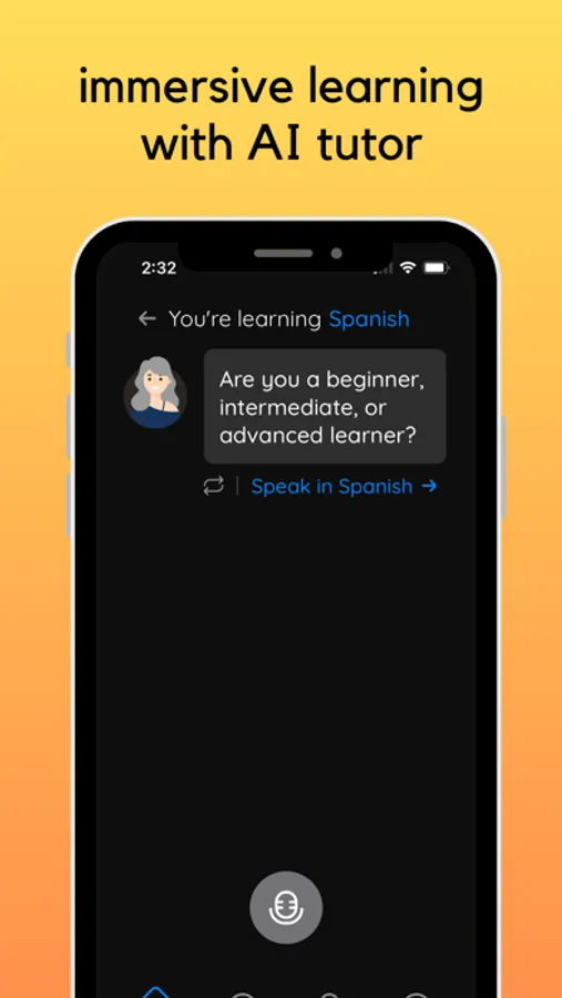 Learn any language for free with our AI-powered app. Choose a language and practice your conversational skills. Improve your pronunciations and speaking skills.