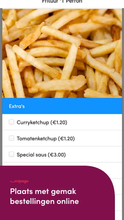 Probeer nu onze nieuwe app en ontdek hoe makkelijk en snel je je favoriete afhaalmaaltijden kan bestellen! Je kan al direct betalen en de vooruitgang volgen van je bestelling. Zo weet je precies wanneer je maaltijd klaar is om afgehaald te worden. Bon appétit!