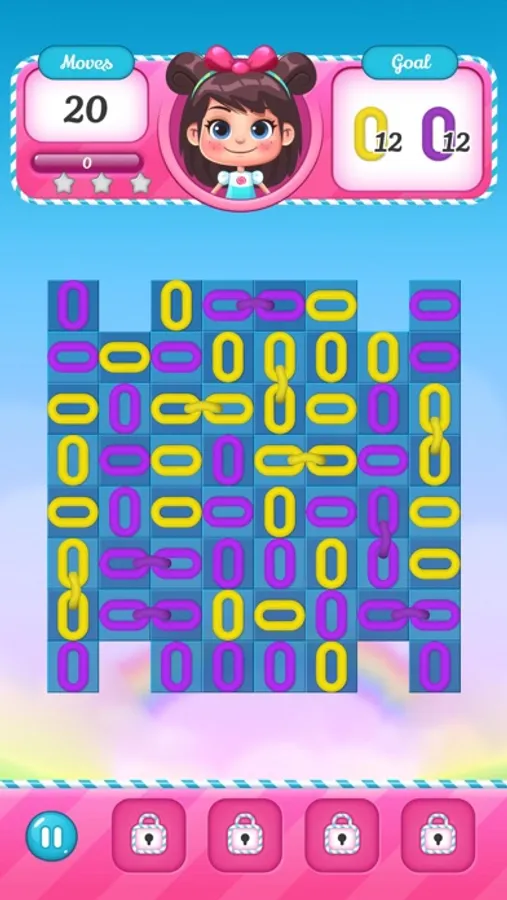 This game features an original match 3 mechanic : turn the links to align them, and destroy the chains to reach each level goal!