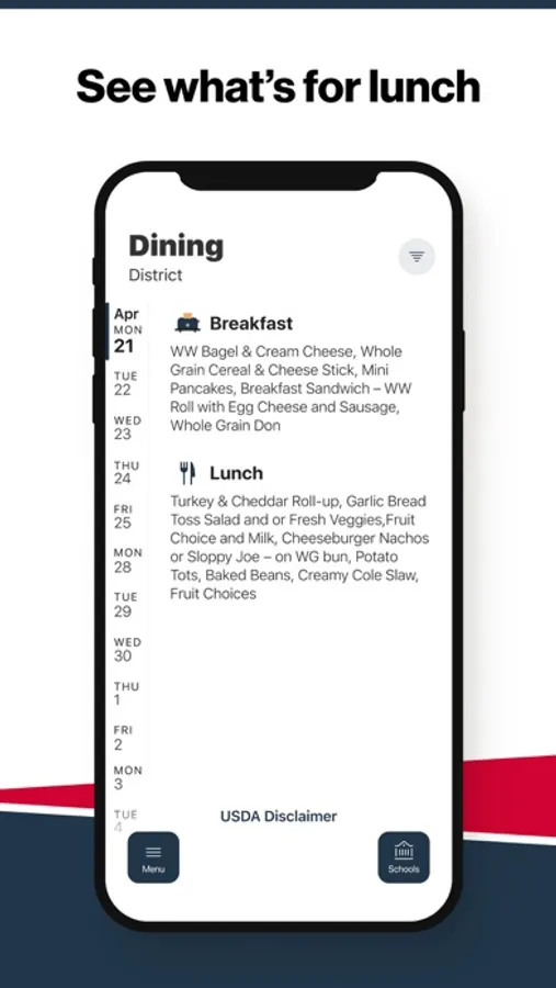 Within the dining section, you’ll find an easy to navigate, weekly menu, sorted by day and meal type.