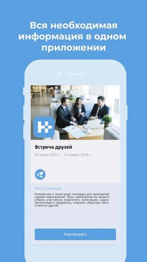 Широкие возможности коммуникации с другими участниками, создание бизнес-сообществ, календарь событий, избранное, тэги и многое другое - для сотрудников мероприятий компании Bausch Health.