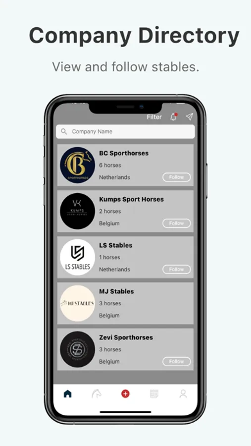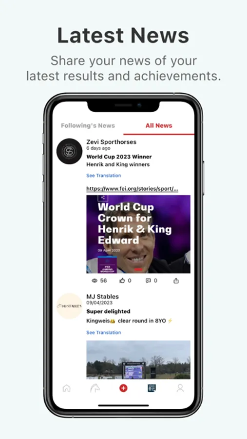 • List your company and horses in the directories and publish the latest news or blog on the in-app platform.