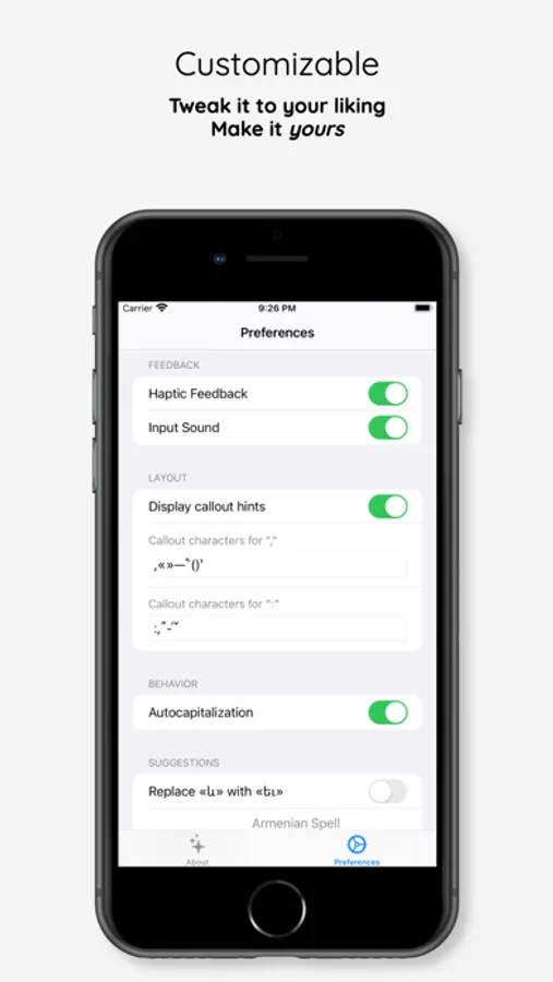 Customizable: Hayatar is designed to cater to your individual needs. You can easily customize the keyboard's behavior and settings to create a personalized typing experience that best suits your style and preferences. Have several iOS devices? Turn on iCloud sync to synchronize your preferences!
