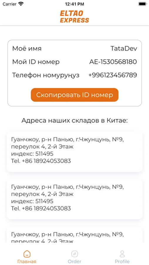 Eltao Express — одна из логистических и складских услуг в Кыргызстане. Это наше приложение, которое используется для отслеживания статуса вашей курьерской посылки с логистическим кодом, который мы вам отправили, а также есть другие функции, которые вы также можете отслеживать неизвестный заказ с помощью orderId,