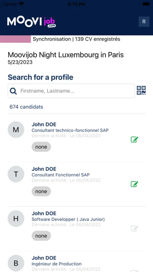 Cette application est utilisée lors des évènements de recrutement Moovijob Night
