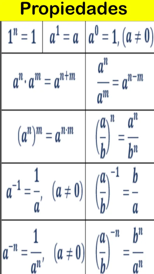 Tambien tiene una tabla de propiedades de la potencia y una calculadora en donde podras calcular la potencia con base y exponente