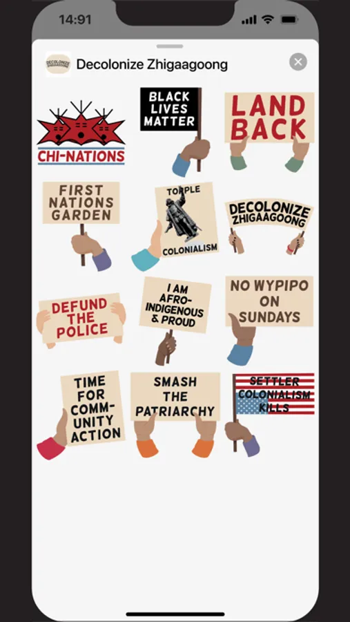 This sticker set is inspired by the intersectional experiences of navigating Urban Native life in Zhigaagoon (Chicago).