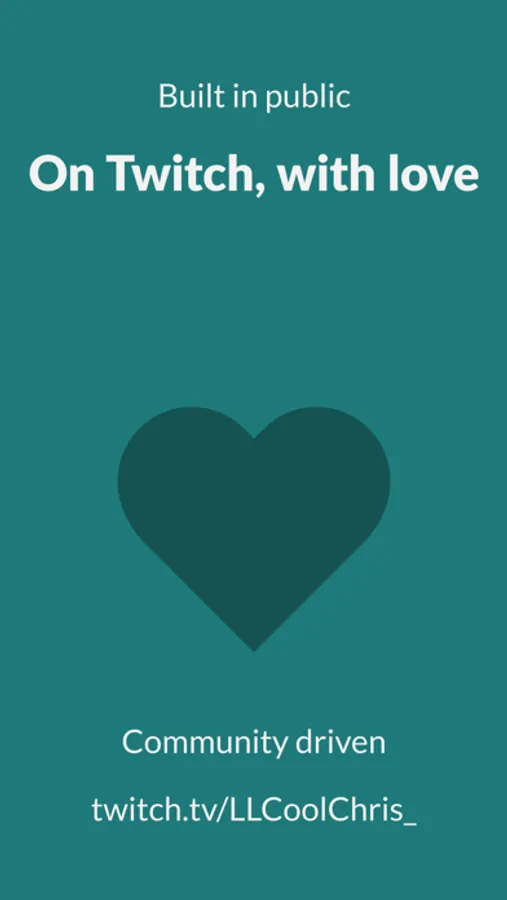 Join us on our journey as we continue to improve and innovate our app. Follow our development updates and ask questions live on Twitch at https://twitch.tv/LLCoolChris_